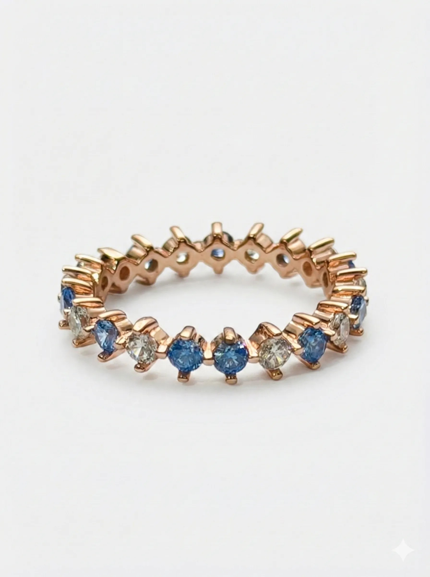 Embrace the harmony of colors and textures with this rose gold eternity-style ring, designed to captivate hearts and complement any ensemble. Don’t miss the chance to own a piece that’s as unique and radiant as you are.